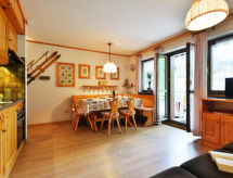 Penia 3 km von Canazei: Kleines, komfortables Mehrfamilienhaus "Genziana". 9 Wohnungen im Ferienhaus. 1.5 km vom Zentrum von Alba di Canazei, 3 km vom Zentrum von Canazei, ruhige Lage im Villenviertel, 800 m vom Skigebiet. Im Hause: Skiraum, Zentralheizung, Heizung nur verfügbar von 01.12. bis 01.05.. Im Winter bitte Schneeketten mitbringen. Parkplatz, Gemeinschaftsgarage beim Haus. Lebensmittelgeschäft 300 m, Supermarkt 1 km, Restaurant, Bar 300 m. Bergbahn 800 m, Skibushaltestelle 300 m. Nahe gelegene Sehenswürdigkeiten: Sella Ronda 800 m, Marmolada 9 km. Bitte beachten: Fahrzeug empfohlen. Weitere Unterkünfte sind buchbar.Interior