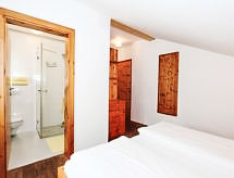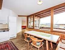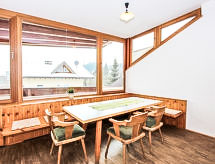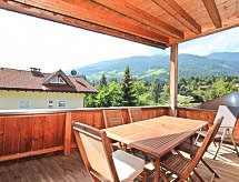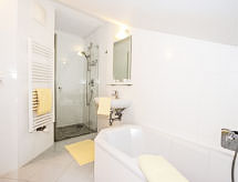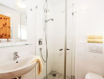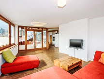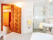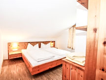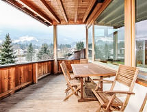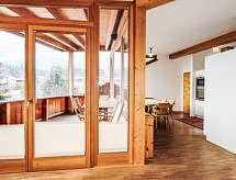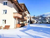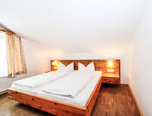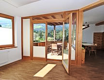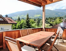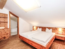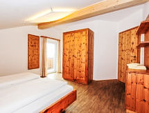 5-Zimmer-Wohnung 140 m2 im 2. Stock. Geräumig, teilweise abgeschrägt, sehr komfortabel und geschmackvoll eingerichtet: Eingang. 2 Doppelzimmer, jedes Zimmer mit Dusche/WC. 1 Doppelzimmer mit begehbarer Kleiderschrank mit Dusche/WC. Ausgang zum Balkon. 1 Doppelzimmer mit Bad/Dusche/WC. Ausgang zum Balkon. Grosses Wohnzimmer mit Sat-TV (Flachbildschirm). Ausgang zur Terrasse. Grosse, offene Küche (Backofen, Geschirrspüler, 4 Glaskeramikherd Platten, Mikrowelle, Tiefkühler, elektrische Kaffeemaschine) mit Essecke. Sep. WC. Balkon, Terrasse. Terrassenmöbel. Herrliche Sicht auf die Berge und die Landschaft. Zur Verfügung: Internet (Wireless LAN, extra). Wunderschöne Wohnung mit toller Terrasse. Alle Zimmer in Zirbe! Im Idyllischen Garten geniessen Sie Erholung als ein Naturerlebnis. Es gibt ein Balkon. Eine Terrasse ist verfügbar. Das Haus ist auch mit einer Veranda ausgestattet. Ein WLAN (Drahtloses lokales Netzwerk) ist verfügbar. Das Haus ist auch mit einem Tischtennistisch ausgestattet.- Aktivitäten in der Nähe