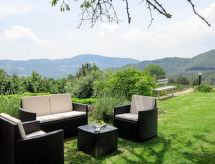 "Giallo", 2-Zimmer-Wohnung 35 m2, im Erdgeschoss. Objekt geeignet für 2 Erwachsene + 2 Kinder. Geschmackvoll und gemütlich eingerichtet: Wohn-/Esszimmer mit Esstisch und Stereoanlage. 1 Zimmer mit 1 x 2 Etagenbetten, 1 franz. Bett (135 cm). Ausgang zum Balkon. Kleine, offene Küche (2 Induktionskochplatten). Dusche/WC. Heizung. Holzböden, Natursteinböden. Balkon, Gartensitzplatz. Balkonmöbel. Panoramasicht. Zur Verfügung: Internet (Wireless LAN, gratis). Bitte beachten: Nichtraucher-Unterkunft. Maximal 1 Haustier/Hund erlaubt. Eigener Eingang. Unterkunft mit angeschlossenem Restaurant. Eine Veranda ist verfügbar.- Ausstattung