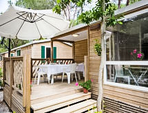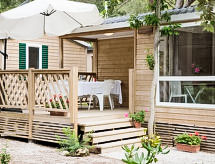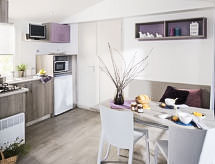 3-Zimmer-Mobilheim 25 m2. Zweckmässig und modern eingerichtet: kleines Wohn-/Esszimmer mit Küchenblock und TV. 1 kleines Doppelzimmer. 1 kleines Zimmer mit 2 Betten. Dusche, sep. WC. Klimaanlage (extra). Terrasse 15 m2. Terrassenmöbel. Zur Verfügung: Fliegengitter, Haartrockner. Parkplatz Nr. 1. 1 Haustier/Hund erlaubt. Mit eingezäuntem Grundstück. Ein Babybett ist vorhanden. Ein Kinderbecken ist vorhanden. Unabhängiger sind Sie mit der eigens vorhandenen Waschmaschine. Ein Wäschetrockner ist verfügbar. Ein Tischtennistisch ist verfügbar.- Ausstattung