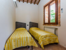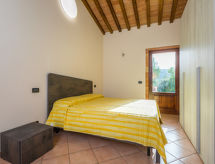 3-Zimmer-Doppelhaushälfte 60 m2. Einfach und zweckmässig eingerichtet: Wohn-/Esszimmer mit Esstisch und Sat-TV. Ausgang zur Terrasse. 1 Zimmer mit 1 franz. Bett (160 cm). Ausgang zur Terrasse. 1 Zimmer mit 2 Betten (80 cm). Kleine, offene Küche (4 Flammen, Toaster, Wasserkocher, Mikrowelle, elektrische Kaffeemaschine, Kapseln für die Kaffeemaschine (Nescafe Dolce Gusto) extra). Dusche/WC. G-Heizung, Klimaanlage. Terrasse 25 m2. Terrassenmöbel. Panoramasicht auf das Schwimmbad und die Landschaft. Zur Verfügung: Kinderhochstuhl, Babybett bis 2 Jahre. Internet (Wireless LAN, gratis). Bitte beachten: Nichtraucher-Unterkunft. 1 Haustier/Hund erlaubt. Das Haus ist auch mit einem Pool ausgestattet. Frische Bettwäsche verfügbar.- Ausstattung