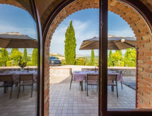 Ferienanlage "Girasole". 5 Wohnungen in der Residenz. 8 km vom Zentrum von Montecatini Val di Cecina, 2 km vom Zentrum von Ponteginori, 6 km vom Zentrum von Saline di Volterra, auf einem Hügel, 27 km vom Meer. Zur Mitbenutzung: Grundstück 2 ha (eingezäunt), gepflegter Terrassengarten Rasen und Bäumen, Schwimmbad (12 x 6 m, 150 - 150 cm tief, saisonale Verfügbarkeit: 15.Mai. - 30.Sep.). Aussendusche, Grill, Poolpflege durch den Besitzer/Gärtner. Wäschewechsel (zusätzlich extra). Handtuchwechsel (zusätzlich extra). Parkplatz auf dem Grundstück. Supermarkt 2 km, Restaurant 800 m, Bäckerei 2 km, Bahnstation "Ponteginori" 2.5 km, Sandstrand "Marina di Cecina" 27 km, Hallenbad 24 km. Nahe gelegene Sehenswürdigkeiten: San Gimignano 45 km, Pisa 75 km, Firenze 100 km.Interior