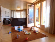 "Gloria", 8-Zimmer-Wohnung 180 m2 im 2. Stock. Geräumig und hell, sehr komfortabel und gemütlich eingerichtet: offenes grosses Wohn-/Esszimmer 50 m2 mit Panoramafenster mit Schwedenofen, Esstisch, Kabel-TV, Flachbildschirm, Stereoanlage und DVD. Ausgang zum Balkon. Offener Salon mit Schwedenofen. 1 grosses Doppelzimmer mit 1 Doppelbett (160 cm, Länge 210 cm), Kabel-TV. Ausgang zum Balkon. 1 grosses Doppelzimmer mit 1 Doppelbett (180 cm, Länge 200 cm). Ausgang zum Balkon. 2 Doppelzimmer, jedes Zimmer mit 1 franz. Bett (160 cm, Länge 200 cm). 2 Zimmer, jedes Zimmer mit 1 franz. Bett (140 cm, Länge 200 cm). Offene Küche (Backofen, Geschirrspüler, 4 Glaskeramikherd Platten, Toaster, Wasserkocher, Mikrowelle, elektrische Kaffeemaschine, Kapseln für die Kaffeemaschine (Illy) extra, Pizzaofen). 2 Bäder/WC, 2 Duschen/WC. Fussbodenheizung. Parkettböden. Grosser Balkon, Südlage und Ostlage. Balkonmöbel. Herrliche Panoramasicht auf die Berge, das Tal und die Ortschaft. Zur Verfügung: Kinderhochstuhl, Babybett bis 2 Jahre (extra), Haartrockner, Holz (extra). Internet (Wireless LAN, gratis). IPod docking station. Bitte beachten: geeignet für Familien. Nichtraucher-Unterkunft. Bitte unterlassen Sie das Rauchen im Ferienobjekt. Es ist nicht erlaubt. Ein DVD Spieler ist vorhanden.- Charakteristik des Mietobjekts