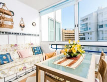 2-Zimmer-Wohnung 44 m2 im 5. Stock. Einfach und zweckmässig eingerichtet: Wohn-/Esszimmer mit Digital-TV. 1 offenes Zimmer mit 1 franz. Bett. Offene Küche (Backofen, Geschirrspüler, 4 Glaskeramikherd Platten, Mikrowelle, Tiefkühler). Dusche/WC. (extra), Klimaanlage. Keine Heizmöglichkeit. Sicht auf das Meer. Zur Verfügung: Waschmaschine. Bitte beachten: 1 Haustier/Hund erlaubt. TV nur ES. HUTG024704 Sie gelangen mit dem Aufzug zur Etage der Wohnung. Gewährt spektakulärer Aussicht auf das Meer. Treten Sie ein und spüren die erfrischende Brise der Klimaanlage. Ein Mikrowellenofen steht zur Verfügung.- Ausstattung