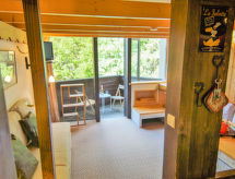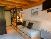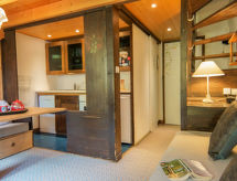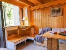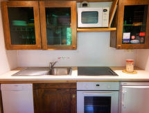 2-Zimmer-Wohnung 35 m2 auf 2 Stockwerken im 2. Stock. Wohn-/Esszimmer mit TV. Ausgang zum Balkon. Kochnische (Backofen, Geschirrspüler, 4 Glaskeramikherd Platten, Wasserkocher, Mikrowelle, elektrische Kaffeemaschine). Sep. WC. Obergeschoss: 1 Zimmer mit 1 franz. Bett (140 cm, Länge 190 cm). Schlafnische mit 1 x 2 Etagenbetten (90 cm, Länge 190 cm). Bad. E-Heizung. Balkon, Westlage. Schöne Sicht auf die Berge. Zur Verfügung: Internet (Wireless LAN, gratis). Bitte beachten: TV nur FR. Rauchmelder. Eine Badewanne ist vorhanden. Das Haus ist auch mit einem Internetanschluss ausgestattet.- Charakteristik des Mietobjekts