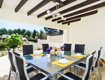 7-Zimmer-Haus 170 m2. Zweckmässig eingerichtet: Wohnzimmer mit Schwedenofen, Kabel-TV, Digital-TV, Internationale TV-Sender, Stereoanlage und Klimaanlage. Ausgang zur Veranda. Esszimmer. 2 Zimmer, jedes Zimmer mit 1 franz. Bett (135 cm, Länge 190 cm), Klimaanlage. Küche (Backofen, Geschirrspüler, 4 Glaskeramikherd Platten, Mikrowelle, Tiefkühler, elektrische Kaffeemaschine). Bad/WC. Unteres Geschoss: 2 Zimmer, jedes Zimmer mit 2 Betten (90 cm, Länge 190 cm), Klimaanlage. Dusche/WC. Terrassenmöbel, Gartengrill (mobil), Liegestühle (8). Zur Verfügung: Waschmaschine, Bügeleisen, Kinderhochstuhl, Babybett, Haartrockner. Internet (Wireless LAN, gratis). Blu-Ray Player. Parkplatz (eingezäunt, 2 Autos) beim Haus. Bitte beachten: Maximal 1 kleines Haustier/Hund erlaubt. TV nur DE, ES, EN. FR. AT440771A Mit eingezäuntem Grundstück. Treten Sie ein und spüren die erfrischende Brise der Klimaanlage. Ein privater Pool ist verfügbar. Das Haus ist auch mit einem drahtlosen lokalen Netzwerk (WLAN) ausgestattet. Ein Ofen ist verfügbar.- Charakteristik des Mietobjekts
