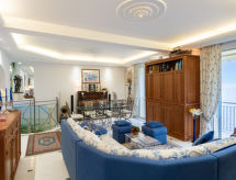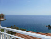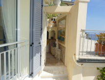 "Grimaldi", 3-Zimmer-Wohnung 120 m2 auf 2 Stockwerken. Geschmackvoll eingerichtet: Wohn-/Esszimmer. Ausgang zur Terrasse. Offene Küche (Backofen, Geschirrspüler, 4 Flammen, Toaster, Wasserkocher, elektrische Kaffeemaschine). Dusche/Bidet/WC, sep. WC. Unteres Geschoss: 1 Doppelzimmer. Ausgang zur Terrasse. 1 Zimmer mit 1 Diwanbett (160 cm, Länge 200 cm). Ausgang zum Balkon. Dusche/Bidet/WC. G-Heizung. Heizung nur verfügbar von 15.10. bis 30.04. 2 Balkone 12 m2, 2 grosse Terrassen 30 m2. Terrassenmöbel. Sehr schöne Panoramasicht auf das Meer. Zur Verfügung: Waschmaschine, Babybett bis 2 Jahre. Internet (Wireless LAN, gratis). Bitte beachten: eigener Eingang. CITRA 008065-LT-0300- Ausstattung