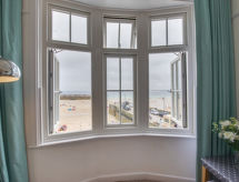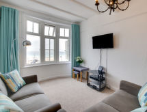 3-Zimmer-Wohnung im 2. Stock. Komfortabel und gemütlich eingerichtet: Wohn-/Esszimmer mit TV (Flachbildschirm). 1 Zimmer mit 1 Doppelbett. 1 Zimmer mit 2 Betten. Küche (4 Kochplatten, Backofen, Mikrowelle). Bad/Dusche/WC. E-Heizung, G-Heizung. Sicht auf den Hafen. Zur Verfügung: Waschmaschine, Wäschetrockner, Kinderhochstuhl, Babybett (extra). Bitte beachten: Nichtraucher-Haus. TV nur EN. Kein Fahrstuhl. Beachten Sie bitte, dass sich die Unterkunft über einem "Fisch and Chip"-Laden befindet. Der Eingang ist auf der Rückseite des Gebäudes zu finden.- Charakteristik des Mietobjekts