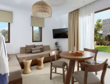 Moderne, schöne, alleinstehende Ferienanlage "Volta Suites & Villas", auf 2 Stockwerken. 10 Wohnungen im Ferienhaus. Im Ortsteil Kato Gouves, ruhige, sonnige Lage, 650 m vom Meer, 650 m vom Strand. Zur Mitbenutzung: schöner, gepflegter Garten mit Blumen und Bäumen, Liegewiese, Schwimmbad eckig (110 m2, 130 - 140 cm tief, saisonale Verfügbarkeit: 01.Mai. - 31.Okt.). Aussendusche, Grill, Parkplatz beim Haus. Lebensmittelgeschäft, Supermarkt, Restaurant, Bar, Bäckerei, Café 500 m, Sandstrand "Gouves Beach" 650 m. Golfplatz (18 Loch) 12.9 km, Reitstall 11.6 km. Nahe gelegene Sehenswürdigkeiten: Labyrinth Park 11.4 km, Watercity Waterpark 8.2 km, Lychnostatis Museum 16.7 km, Minoan Palace of Knossos 20.4 km, Nikos Kazantzakis Museum 29.8 km, CRETAquarium 2.2 km. Bitte beachten: Fahrzeug empfohlen. Geeignet für Familien. Jugendgruppen nur auf Anfrage. Das Foto ist nur ein Wohnungsbeispiel. Weitere Unterkünfte sind buchbar.Interior