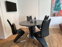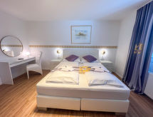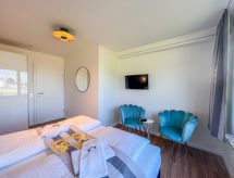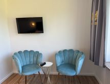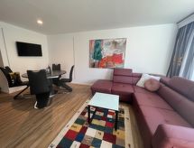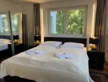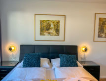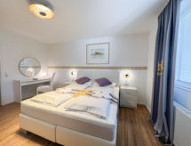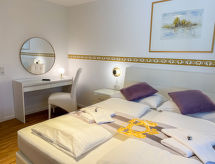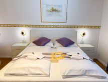 "Appartment Ehrmann", 4-Zimmer-Wohnung 100 m2, im Erdgeschoss. Geräumig und hell, sehr komfortabel und stilvoll eingerichtet: Eingang. Offenes grosses Wohn-/Esszimmer mit Esstisch, Kabel-TV und Flachbildschirm. Ausgang zur Terrasse. 1 Doppelzimmer mit Dusche/WC, Kabel-TV und Flachbildschirm. 2 Doppelzimmer, jedes Zimmer mit Kabel-TV und Flachbildschirm. Offene Küche (Backofen, Geschirrspüler, 4 Glaskeramikherd Platten, Toaster, Wasserkocher, Mikrowelle) mit Bar. Dusche/WC, sep. WC. Parkettböden, Natursteinböden. Terrasse. Terrassenmöbel. Zur Verfügung: Haartrockner. Internet (Wireless LAN, gratis). Bitte beachten: Nichtraucher-Unterkunft. Rauchmelder, Feuerlöscher. Ein Doppelzimmer liegt außerhalb der abgeschlossenen Wohnung. 50628-001379-2020 Das Grundstück ist komplett eingezäunt.- Ausstattung