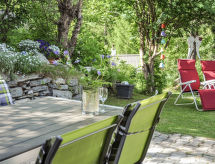 2-Zimmer-Chalet 90 m2. Komfortabel und gemütlich eingerichtet: Wohn-/Esszimmer mit Schwedenofen, Essecke und Kabel-TV (Flachbildschirm). Ausgang zum Garten, zum Gartensitzplatz, Richtung Süden. 1 Doppelzimmer. Offene Küche (Backofen, Geschirrspüler, 4 Glaskeramikherd Platten, elektrische Kaffeemaschine, Racletteofen, Fondue Set (Käse)). Bad/WC. Bodenheizung. Grosser Gartensitzplatz, Garten 40 m2. Terrassenmöbel, Gartengrill, Liegestühle (2), Abstellkammer. Herrliche Panoramasicht auf die Berge und die Landschaft. Zur Verfügung: Waschmaschine, Bügeleisen, Babybett, Haartrockner. Internet (Wireless LAN, gratis). Garage in 200 m. Bitte beachten: Nichtraucher-Unterkunft. Badewanne im Haus. Das Grundstück ist komplett eingezäunt. Geeignet für ein Barbecue. Es gibt ein Geschirrspüler. Es gibt ein überdachter Parkplatz.- Ausstattung
