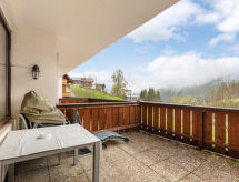 1-Zimmer-Wohnung 33 m2 im 1. Stock. Modern eingerichtet: Eingang. Wohn-/Schlafzimmer mit 1 Doppeldiwanbett, 1 Doppelbett, Esstisch und Kabel-TV. Ausgang zur Terrasse. Kleine Küche (4 Kochplatten, Backofen, Mikrowelle). Dusche/WC. Terrasse 14 m2. Terrassenmöbel. Schöne Panoramasicht auf die Berge, das Tal und die Skipiste. Bitte beachten: Nichtraucher-Unterkunft. Rauchmelder. 50628-000845-2020 Ein überdachter Parkplatz ist vorhanden. Um auch mal was schnell selber zuzubereiten, steht ein Mikrowellenofen parat. Ein Ofen ist verfügbar.- Ausstattung