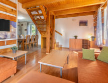 Čistá v Krkonoších 2 km von Černý Důl: Kinderfreundliches, schönes, komfortables Feriendorf "Holiday Hill 62", 500 m.ü.M., umgeben von Bäumen und Wiesen. 43 Häuser im Ferienresort. Am Ortsrand, alleinstehende, ruhige, sonnige Lage, 1.5 km vom See, 3 km vom Skigebiet, im Grünen. Zur Mitbenutzung: Grundstück 6 ha, Wiese, Schwimmbad beheizt (9 x 4 m, 120 cm tief, saisonale Verfügbarkeit: 13.Mai. - 30.Sep. Öffnungszeiten Schwimmbad: 09:00-20:00). Dusche/WC im Poolbereich, Tischtennis, Kinderspielplatz (Schaukel, Sandkasten). In der Anlage: Empfang, Zentralheizung. Parkplatz (für 2 Autos) beim Haus. Einkaufsgeschäft 2.5 km, Lebensmittelgeschäft 2.5 km, Supermarkt 7.5 km, Restaurant 1.6 km, Biergarten 400 m, Bushaltestelle "Černý Důl, Čistá-pošta" 400 m, Sandstrand 1.5 km (klein), Hallenbad 19 km. Golfplatz (18 Loch) 14 km, Tennis 2.5 km, Sportzentrum 2.5 km, Wanderwege ab Haus, Radweg 100 m, Skilift 3 km, Sessellift 3 km, Skipisten 3 km, Skibushaltestelle 100 m, Skischule 3 km, Kinderskischule 3 km, Schlittelbahn 7 km, Langlaufloipe 100 m. Nahe gelegene Sehenswürdigkeiten: Janské Lázně Spa 9 km, Vrchlabí 10 km, Aquapark Trutnov 25 km, Zoo Safari Dvůr Králové 29 km, Bozkovské jeskyně 37 km, Adršpašské skály 44 km. Bekannte Skigebiete sind gut erreichbar: Černý Důl 3 km, Herlíkovice 15 km, Pec pod Sněžkou 22 km. Bekannte Seen in der Umgebung sind gut erreichbar: Čistá 1.5 km, Vrchlabí 9 km. Wandergebiete: Sněžka 25 km. Ein idealer Startpunkt zum Wandern in den Bergen ist Cerny Dul/Cista. Ob Profi oder Amateur, zögern Sie nicht und gehen Sie Ihren Rundschlag auf dem naheliegenden Golfplatz trainieren.Interior