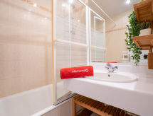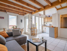 3-Zimmer-Wohnung 47 m2 auf 2 Stockwerken im 2. Stock. Hell, einfach und komfortabel eingerichtet: Wohn-/Esszimmer mit 1 Doppeldiwanbett und TV. Ausgang zum Balkon. 1 Zimmer mit 1 franz. Bett (140 cm, Länge 190 cm). Kochnische (2 Kochplatten, Backofen, Geschirrspüler, Toaster, Wasserkocher, Mikrowelle, elektrische Kaffeemaschine). Bad, sep. WC. E-Heizung. Obergeschoss: Galerie mit 1 franz. Bett (1 x 140 cm, Länge 190 cm). Schöne Sicht auf die Ortschaft. Zur Verfügung: Waschmaschine. Internet (Wireless LAN, extra). Bitte beachten: Rauchmelder. Vorsicht: Im Zwischengeschoss verdeckt der Vorhang das Licht teilweise. 64189000063DF Residenz. Eine Badewanne ist verfügbar. Um auch mal was schnell selber zuzubereiten, steht ein Mikrowellenofen parat.- Charakteristik des Mietobjekts