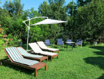 2-Zimmer-Wohnung 55 m2, im Obergeschoss. Rustikal eingerichtet: Obergeschoss: Wohn-/Esszimmer mit Esstisch, Sat-TV und Stereoanlage. 1 Doppelzimmer mit Dusche/WC. Ausgang zum Balkon. Kochnische (Backofen, Geschirrspüler, Gasherd, 4 Flammen, Toaster, Wasserkocher, Mikrowelle, Tiefkühler, elektrische Kaffeemaschine). Heizung. Heizung nur verfügbar von 01.10. bis 05.05. Grosser Gartensitzplatz 20 m2. Liegestühle (2). Schöne Sicht auf die Landschaft. Zur Verfügung: Kinderhochstuhl, Babybett. 1 Haustier/Hund erlaubt. Es gibt ein Babybett. Was wäre eine moderne Küche ohne Mikrowelle? Diejenige welche steht selbstverständlich zur Verfügung.- Ausstattung
