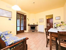 "Il Cerro", 3-Zimmer-Wohnung 70 m2, im Erdgeschoss. Komfortabel und rustikal eingerichtet: Esszimmer mit 1 Doppeldiwanbett, offenem Kamin und TV. Ausgang zur Veranda. 1 Doppelzimmer. 1 Zimmer mit 1 Bett. Kleine Küche (4 Kochplatten, Backofen, Tiefkühler). Dusche/Bidet/WC. G-Heizung (extra). Heizung nur verfügbar von 01.11. bis 15.04. Zur Verfügung: Fliegengitter, Haartrockner. Internet (Wireless LAN). 1 Haustier/Hund erlaubt. Die Veranda ist möbliert (30 m2). Eine Dusche ist verfügbar, daher nutze die Zeit für eine kleine Entspannungseinheit und Erfrischung. Für Erkundigen rund um den Besuch in der Unterkunft bitten wir Sie, sich an die Rezeption zu wenden. Ein Koch steht auch bereit zu Ihren Diensten. Geeignet zum Grillen. Ein Babybett ist vorhanden. Das Haus ist auch mit einer Feuerstelle ausgestattet.- Ausstattung