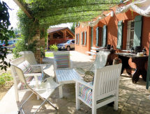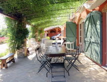 "Il Marchese del Grillo (SEC100)", 6-Zimmer-Haus 280 m2 auf 2 Stockwerken. Objekt geeignet für 8 Erwachsene + 2 Kinder. Schön und gemütlich eingerichtet: Wohn-/Esszimmer mit Esstisch, TV und Stereoanlage. Ausgang zur Terrasse. Wohnzimmer mit TV und Stereoanlage. Ausgang zur Terrasse. Küche (Backofen, Geschirrspüler, 5 Flammen, Toaster, Wasserkocher, Mikrowelle, Tiefkühler, elektrische Kaffeemaschine) mit Esstisch. Ausgang zur Terrasse. Sep. WC. Obergeschoss: 1 Zimmer mit 1 Doppelbett und Dusche/WC. Durchgangszimmer mit 1 Bett und 2 Schlafmöglichkeiten (90 cm, Länge 170 cm). Ausgang zum Balkon. 1 Zimmer mit 1 Doppelbett und Dusche/WC. 1 Zimmer mit 1 Bett und 1 Doppelbett. Bad/WC. Heizung. Natursteinböden. Terrasse Terrasse 30 m2, überdacht. Terrassenmöbel, Gartengrill. Zur Verfügung: Waschmaschine, Bügeleisen, Kinderhochstuhl, Babybett. Internet (Wireless LAN, gratis). Bitte beachten: Nichtraucher-Unterkunft. Maximal 2 Haustiere/Hunde erlaubt. CIR: 00501900001 Eine Terrasse ist vorhanden. Geeignet für ein Barbecue. Ein privater Pool ist vorhanden. Es gibt ein Internetanschluss. Das Haus ist auch mit einem Tischtennistisch ausgestattet.- Charakteristik des Mietobjekts