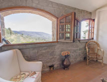 Rustikale, alleinstehende, komfortable Villa "Il Riccio", 300 m.ü.M., renoviert, umgeben von Bäumen. 9 km vom Zentrum von Cortona, 3 km vom Zentrum von Terontola, sonnige Lage auf einem Hügel. Zur Alleinbenutzung: Grundstück 12 ha, Garten 1 ha, Schwimmbad (12 x 5 m, 80 - 180 cm tief, saisonale Verfügbarkeit: 20.Mai. - 20.Sep.). Aussendusche, Gartenmöbel, Grill, Poolpflege durch den Besitzer/Gärtner. Koch möglich (extra). Holprige Zufahrt (1.6 km Naturweg, Bergstrasse). Parkplatz. Lebensmittelgeschäft, Supermarkt, Restaurant 3 m, Bahnstation "Terontola" 3 km, Sandstrand "La Merangola" 12 km, Thermalbad "Chianciano Terme" 35 km, Badesee "Trasimeno" 7 km, See Chianciano 36 km. Nahe gelegene Sehenswürdigkeiten: Castiglione Del Lago 12 km, Passignagno Sul Trasimeno 16 km, Castiglion Fiorentino 17 km, Montepulciano 26 km, Arezzo 34 km, Perugia 39 m. Bitte beachten: Fahrzeug empfohlen. Jugendgruppen nur auf Anfrage. Geeignet für Events. Die Residenz wird durch elektrische Tore geschlossen.Interior