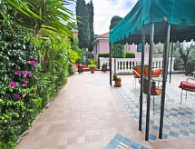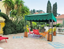 Residenz "Il Risveglio". 6 Wohnungen im Ferienhaus. 1 km vom Zentrum von Imperia Oneglia, sonnige, erhöhte Lage, 1 km vom Meer. Zur Mitbenutzung: Grundstück (eingezäunt) mit Pflanzen und Bäumen, Schwimmbad beheizt (11 x 4 m, 120 cm tief, saisonale Verfügbarkeit: 15.Mai. - 30.Sep.). Aussendusche, Gartenmöbel. Im Hause: Waschmaschine (zur Mitbenutzung). Treppenweg bis zum Haus. Parkplatz (beschränkte Anzahl) in 20 m öffentliche Parkplätze 50 m. Lebensmittelgeschäft 1 km, Restaurant 1 km, Bahnstation "Imperia" 2 km, Kieselstrand 1 km. Nahe gelegene Sehenswürdigkeiten: Imperia Porto Maurizio 5 km. Bitte beachten: Fahrzeug empfohlen. Für Kleinkinder nicht geeignet. Der Besitzer wohnt auf dem gleichen Grundstück. Das Feriengut besteht aus 3 Einheiten und ist von einer Mauer umgeben, das durch ein Tor abgeschlossen ist. Für alle Nautiker, welche zum Segeln nach Ligurien Riviera Ponente kommen werden begeistert sein.Interior