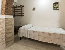 2-Zimmer-Wohnung 60 m2, im Erdgeschoss. Einfach und rustikal eingerichtet: Wohnzimmer mit 1 Doppeldiwanbett und TV. 1 Doppelzimmer. Kochnische (4 Kochplatten, Backofen) mit Esstisch. Dusche/Bidet/WC. Zur Verfügung: Internet (Wireless LAN, gratis). Bitte beachten: 1 Haustier/Hund erlaubt. Eigener Eingang. Das Grundstück ist komplett eingezäunt.- Ausstattung