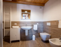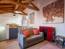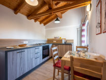 "Il Tiglio", 2-Zimmer-Wohnung 60 m2 im 1. Stock. Komfortabel und modern eingerichtet: Wohn-/Esszimmer mit Sat-TV. Abgeschrägter, offener Zwischenstock, Deckenhöhe 80 - 170 cm mit 1 Schlafmöglichkeit. 1 Doppelzimmer. Kochnische (Geschirrspüler, 4 Flammen, Mikrowelle, elektrische Kaffeemaschine). Dusche/Bidet/WC. Heizung. Heizung nur verfügbar von 15.10. bis 15.04. Zur Verfügung: Kinderhochstuhl, Babybett, Haartrockner. Internet (Wireless LAN, gratis). 1 Haustier/Hund erlaubt. CIR:00413000017 Eine Dusche zur ist Stelle. Nur schnell shampooniert und abgeduscht und schon kann ein neuer Urlaubstag beginnen. Ferienobjekt samt Garten zum Entspannen. Geeignet zum Grillen. Ein Parkplatz ist vorhanden.- Ausstattung