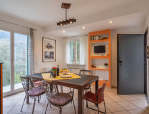 "Innovativa (SNE220)", 3-Zimmer-Haus 65 m2. Modern und stilvoll eingerichtet: 1 Zimmer mit 1 franz. Bett (180 cm). 1 Zimmer mit 2 Betten (80 cm). Esszimmer mit Esstisch und Sat-TV. Ausgang zur Terrasse. Offene Küche (Backofen, Geschirrspüler, 4 Induktionskochplatten, Toaster, Tiefkühler, elektrische Kaffeemaschine). Dusche/WC. E-Heizung, Klimaanlage. Terrasse, grosse Terrasse, Südlage. Terrassenmöbel, Gartengrill (mobil), Liegestühle (4). Panoramasicht auf die Landschaft. Zur Verfügung: Waschmaschine, Bügeleisen, Kinderhochstuhl, Babybett. Internet (Wireless LAN, gratis). Maximal 1 Haustier/Hund erlaubt. CITRA: 009059-LT-0016 Es hat ein Ofen.- Ausstattung