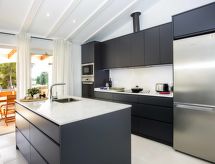 Sehr grosse, moderne, gemütliche Villa "Irenal", renoviert im Jahre 2021. Im Ortsteil Toscal, ruhige, sonnige Lage, 1.2 km vom Meer, 1.2 km vom Strand, in einer Sackgasse. Zur Alleinbenutzung: Schwimmbad eckig (8 x 4 m, 80 - 210 cm tief, saisonale Verfügbarkeit: 01.Jan. - 31.Dez.) mit Innentreppe. Aussendusche, Basketball, Sitzplatz, Pergola, Gartenmöbel, Grillhaus, Parkplatz (für 2 Autos) auf dem Grundstück. Supermarkt 1.5 km, Restaurant 900 m, Bar 1.5 km, Sandstrand "El Arenal" 2.8 km, Steinstrand "Cala Portitxol" 2.8 km, Felsstrand "Cala Blanca" 1.4 km. Der Besitzer akzeptiert keine Jugendgruppen.Interior