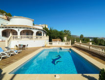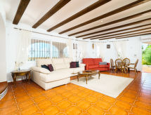 Sehr schöne Villa "Iris". 3.5 km vom Zentrum von Moraira, ruhige, sonnige, erhöhte Lage, 3.1 km vom Meer, 4 km vom Strand, an einer Strasse. Zur Alleinbenutzung: Grundstück (eingezäunt), Schwimmbad eckig (5 x 10 m, saisonale Verfügbarkeit: 01.Jan. und 31.Dez.) mit Innentreppe. Dusche/WC im Poolbereich, Gartenmöbel, Grill. Im Hause: Wireless LAN, Klimaanlage, Waschmaschine, Wäschetrockner. Parkplatz (für 2 Autos). Einkaufsgeschäft 3.3 km, Lebensmittelgeschäft 2.6 km, Supermarkt 2.6 km, Einkaufszentrum 3.3 km. Golfplatz (9 Loch) 2 km. Bitte beachten: Fahrzeug empfohlen. Geeignet für Familien. Jugendgruppen nur auf Anfrage. Entdecke Segelrouten in der Region die Sie zu den atemberaubendsten Natursehenswürdigkeiten und Landschaften bringen. Ob Profi oder Amateur, zögern Sie nicht und gehen Sie Ihren Rundschlag auf dem naheliegenden Golfplatz trainieren.Interior