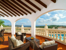 "Iris", 4-Zimmer-Villa 150 m2. Geräumig und hell, komfortabel eingerichtet: grosses Wohn-/Esszimmer mit 1 Doppeldiwanbett, offenem Kamin, Esstisch, Sat-TV und Klimaanlage. Ausgang zur Terrasse. 1 Zimmer mit 1 Bett, 1 Doppelbett und Klimaanlage. 1 Zimmer mit 1 Doppelbett und Klimaanlage. 1 Zimmer mit 1 Doppelbett, Waschbecken, Bad/Dusche/WC und Klimaanlage. Offene Küche (4 Kochplatten, Backofen, Geschirrspüler, Tiefkühler, elektrische Kaffeemaschine). Bad/Dusche, Doppelwaschbecken. Klimaanlage. Grosse Terrasse. Terrassenmöbel, Gartengrill, Liegestühle. Herrliche Panoramasicht auf das Meer, die Landschaft und die Ortschaft. Zur Verfügung: Waschmaschine, Wäschetrockner. Internet (Wireless LAN). Parkplatz (2 Autos). Geeignet für Familien. AT-463191-A Mit eingezäuntem Grundstück. Mit Aussicht aufs Meer. Es hat ein privater Pool.- Aktivitäten in der Nähe