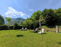 4-Zimmer-Haus 110 m2 auf 2 Stockwerken. Rustikal eingerichtet: Wohn-/Esszimmer mit offenem Kamin, Esstisch, Sat-TV und Stereoanlage. Ausgang zum Garten, zur Terrasse. Offene Küche (Backofen, Geschirrspüler, Gasherd, 4 Flammen, Toaster, Wasserkocher, Mikrowelle, Tiefkühler, elektrische Kaffeemaschine). Dusche/WC. Obergeschoss: 1 Zimmer mit 2 Betten und 1 franz. Bett (160 cm). Ausgang zum Balkon. 1 Zimmer mit 1 franz. Bett (160 cm). 1 Zimmer mit 2 Betten. Ausgang zum Balkon. Dusche/WC. G-Heizung. Parkettböden, Natursteinböden. 2 Balkone, Terrasse überdacht, Gartensitzplatz. Terrassenmöbel, Balkonmöbel, Gartengrill, Liegestühle (6). Zur Verfügung: Waschmaschine, Bügeleisen, Kinderhochstuhl, Babybett bis 2 Jahre. Bitte beachten: Nichtraucher-Unterkunft. 2 Haustiere/Hunde erlaubt. CIR: 013077-CNI-00006 Mit eingezäuntem Grundstück. In unserem Garten bietet sich Ihnen viel Platz für Entspannung und Erholung. Das Haus ist auch mit einem Balkon ausgestattet. Eine Veranda ist verfügbar.- Ausstattung