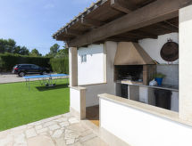 "Villa Isabel", 5-Zimmer-Villa 110 m2 auf 2 Stockwerken. Komfortabel und gemütlich eingerichtet: 1 Zimmer mit 1 franz. Bett (160 cm). Wohn-/Esszimmer mit Esstisch und Digital-TV. Offene Küche (Geschirrspüler, 3 Induktionskochplatten, Toaster, Mikrowelle, elektrische Kaffeemaschine). Ausgang zur Terrasse. Dusche/WC. Keine Heizmöglichkeit. Obergeschoss: (Aussentreppe) Wohn-/Esszimmer mit Esstisch, Digital-TV, Flachbildschirm und Klimaanlage. Ausgang zur Terrasse. 1 Zimmer mit 1 franz. Bett (150 cm). 1 Zimmer mit 2 Betten (105 cm). Kochnische (Backofen, Geschirrspüler, 4 Induktionskochplatten, Toaster, Wasserkocher, Mikrowelle, elektrische Kaffeemaschine, Kapseln für die Kaffeemaschine (Nespresso) extra). Dusche/WC. Gartensitzplatz. Terrassenmöbel, Gartengrill. Zur Verfügung: Waschmaschine, Bügeleisen, Haartrockner. Internet (Wireless LAN, gratis). Parkplatz beim Haus. Bitte beachten: TV nur ES. Keine interne Verbindung zwischen den Etagen. HUTTE041959 Mit eingezäuntem Grundstück. Das Haus ist auch mit einer Veranda ausgestattet. Es gibt ein privater Pool. Zur Verfügung steht ein Mikrowellengerät.- Ausstattung