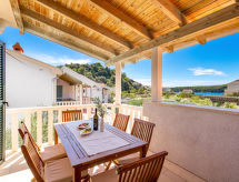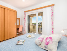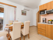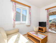 "Ivan 3", 3-Zimmer-Wohnung 60 m2 im 1. Stock. Modern und gemütlich eingerichtet: Wohn-/Esszimmer 25 m2 mit 1 Doppeldiwanbett, Sat-TV und Klimaanlage. Ausgang zur Terrasse. 1 Zimmer mit 1 Doppelbett (160 cm, Länge 200 cm). Ausgang zum Balkon. 1 Zimmer mit 2 Betten. Ausgang zum Balkon. Offene Küche (4 Kochplatten, Mikrowelle, Tiefkühler). Dusche/WC. Balkon 6 m2, Balkon 3 m2, Terrasse 20 m2, überdacht. Terrassenmöbel. Sicht auf das Meer und das Schwimmbad. Zur Verfügung: Safe. Internet (Wireless LAN, gratis). Parkplatz. Ist ein regelmäßiges Duschritual fest im Tagesablauf verankert? Das schaffen wir, denn eine Dusche ist vorhanden. Mit eingezäuntem Grundstück. Überdies werden sie verwöhnt mit einem freien Blick auf das Meer. Eine Terrasse ist vorhanden. Das Haus ist auch mit einem Pool ausgestattet. Ein beheizter Pool ist verfügbar. Das Haus ist auch mit einem Kinderbecken ausgestattet. Was wäre eine moderne Küche ohne Mikrowelle? Diejenige welche steht selbstverständlich zur Verfügung.- Ausstattung