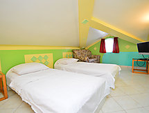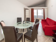 2-Zimmer-Wohnung 50 m2 im 2. Stock, Ostlage. Wohn-/Esszimmer mit 1 Diwanbett (110 cm, Länge 190 cm). Ausgang zum Balkon. 1 abgeschrägtes Zimmer, Deckenhöhe 120 - 220 cm mit Dachfenster mit 2 Betten (90 cm, Länge 200 cm), 1 Diwanbett (120 cm, Länge 190 cm), Sat-TV (Flachbildschirm). Küche (2 Kochplatten, Mikrowelle, elektrische Kaffeemaschine) mit Sat-TV (Flachbildschirm), Klimaanlage. Dusche/WC. Klimaanlage (extra). Balkon 5 m2. Balkonmöbel. Herrliche Sicht auf den See. Zur Verfügung: Waschmaschine. Internet (Wireless LAN, gratis). 1 Haustier/Hund erlaubt. Die Klimaanlage sorgt für eine gute Raumtemperierung. Denn der Wohlfühlfaktor spielt eine wichtige Rolle und ist uns wichtig. Es gibt ein Parkplatz.- Ausstattung
