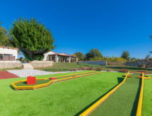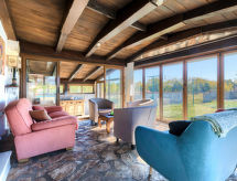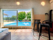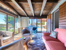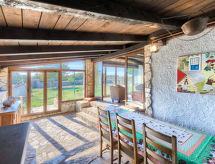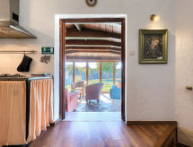 6-Zimmer-Haus 200 m2 auf 2 Stockwerken. Wohn-/Schlafzimmer mit 1 Doppelbett (2 x 80 cm, Länge 200 cm), Esstisch, Küchenblock, Dusche/WC und Klimaanlage. Ausgang zur Terrasse, zum Schwimmbad. Wohnzimmer mit Panoramafenster. Ausgang zur Terrasse. 2 Zimmer, jedes Zimmer mit 1 Doppelbett (160 cm, Länge 200 cm). Esszimmer mit Panoramafenster mit offenem Kamin. Esszimmer. Offene Küche (2 Kochplatten, Backofen, Geschirrspüler, 2 Flammen, Toaster, Wasserkocher, Mikrowelle, elektrische Kaffeemaschine). 2 Duschen/WC, sep. WC. Unteres Geschoss: (Wendeltreppe) Wohn-/Esszimmer mit offenem Kamin (nur Deko), Sat-TV. 1 Zimmer mit 1 franz. Bett (160 cm, Länge 200 cm). Terrasse überdacht Terrasse. Terrassenmöbel, Gartengrill, Liegestühle (8). Sicht auf das Schwimmbad. Zur Verfügung: Bügeleisen. Internet (Wireless LAN, gratis). Bitte beachten: Nichtraucher-Haus. 1 Haustier/Hund erlaubt. Keine interne Verbindung zwischen den separaten Wohneinheiten. Bungalow: Wohn-/Schlafzimmer mit Kochnische. Haupthaus mit Wohnbereich, 2 Essbereichen, offener Küche und 2 Schlafzimmern im Erdgeschoss, sowie Wohn-/Essbereich und 1 Schlafzimmer im Souterrain. Kleine, hoch angesetzte Fenster im Souterrain. Das Rauchen ist gegen die Hausordnung. Es hat eine Veranda. Es gibt eine Feuerstelle. Ein Pool ist vorhanden. Es gibt ein privater Pool. Das Haus ist auch mit einem Internetanschluss ausgestattet.- Ausstattung