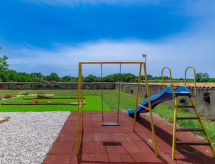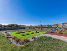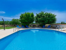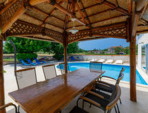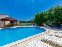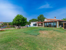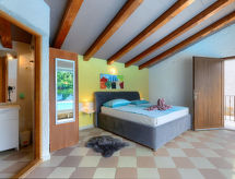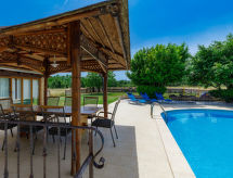 Einfamilienhaus "Jadranka (RCA554)", auf 2 Stockwerken. Im Weiler Radeki-Glavica, 6 km vom Zentrum von Marčana, 10 km vom Zentrum von Pula, 20 km vom Zentrum von Medulin, 15 km vom Meer. Zur Alleinbenutzung: Grundstück 1'300 m2 (eingezäunt) mit Rasen und Bäumen, Schwimmbad (46 m2, 150 cm tief, saisonale Verfügbarkeit: 13.Mai. - 30.Sep.). Ungleichmässige Schwimmbadform, Aussendusche, Laube, Terrasse, Gartenmöbel (Rutschbahn, Schaukel). Im Hause: Internetzugang, Waschmaschine. Zufahrt bis zum Haus (100 m Naturweg). Parkplatz (für 3 Autos) beim Haus. Einkaufsgeschäft 2.5 km, Supermarkt 10 km, Restaurant 6 km, Kieselstrand 15 km. Jacht-Hafen 15 km, Minigolf 20 m. Bitte beachten: Flugplatz 3 km vom Haus. Die Anlage besteht aus einem Bungalow und dem Haupthaus, die beide als eine Einheit vermietet werden.Interior