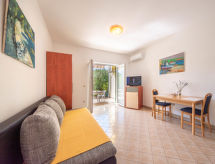 Mehrfamilienhaus "Jasna". 11 km vom Zentrum von Krk, 11 km vom Zentrum von Malinska, ruhige, sonnige Lage, 400 m vom Meer, 400 m vom Strand, in einer Sackgasse. Zur Mitbenutzung: Grundstück 570 m2. Gartenmöbel, Grill. Im Hause: Internetzugang. Parkplatz beim Haus auf dem Grundstück. Einkaufsgeschäft 500 m, Restaurant 1 km, Kieselstrand 750 m, Felsstrand, betonierter Strand 400 m.Interior