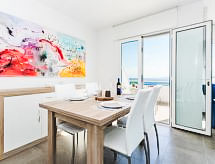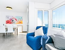 4-Zimmer-Haus 118 m2 auf 2 Stockwerken, Südwestlage. Vollständig renoviert im Jahre 2019, modern und stilvoll eingerichtet: Wohn-/Esszimmer mit Panoramafenster mit 1 Diwanbett, Esstisch, Digital-TV, Flachbildschirm, Klimaanlage, Warmluftheizung und elektrischem Rollladen. Ausgang zur Terrasse, Richtung Süden und Richtung Westen. Küche (Geschirrspüler, 3 Induktionskochplatten, Mikrowelle, Tiefkühler, elektrische Kaffeemaschine). Sep. WC. Unteres Geschoss: 1 Zimmer mit 1 franz. Bett. Ausgang zur Terrasse, Richtung Süden und Richtung Westen. 1 Zimmer mit 2 Betten. Ausgang zum Balkon. 1 Zimmer mit 1 Bett (110 cm, Länge 190 cm). Bad/WC. Kleine Terrasse 10 m2, Südlage und Westlage. Terrassenmöbel. Herrliche Panoramasicht auf das Meer und die Landschaft. Zur Verfügung: Waschmaschine. Internet (Wireless LAN, gratis). Garage. Bitte beachten: TV nur ES. HUTG028994 Gewährt spektakulärer Aussicht auf das Meer. Damit es auch im Sommer angenehm kühl bleibt, verfügt dieses Ferienobjekt über eine Klimaanlage. Das Haus ist auch mit einem Geschirrspüler ausgestattet. Ein überdachter Parkplatz ist vorhanden. Unabhängiger sind Sie mit der eigens vorhandenen Waschmaschine.- Ausstattung