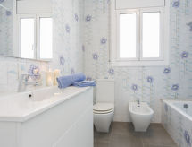 Canyelles Petites 3 km von Roses: Modernes, gemütliches Doppelhaus "Jeroni Pau", auf 2 Stockwerken, renoviert im Jahre 2018. 350 m vom Zentrum von Canyelles, 3 km vom Zentrum von Roses, ruhige, sonnige Lage auf einem Hügel, 700 m vom Meer, 700 m vom Strand, Richtung Südwesten. Zur Alleinbenutzung: Terrasse (10 m2), Gartenmöbel. Im Hause: Wireless LAN, Sonnenterrasse, Dachterrasse, Waschmaschine. Einzelgarage. Supermarkt, Restaurant, Bar, Bäckerei 700 m, Sandstrand "Cala de Canyelles Petites" 700 m, Steinstrand "Cala Montjoi" 5 km, Felsstrand "Cap de Creus" 10 km. Sporthafen 1 km, Golfplatz (15 Loch) 14 km, Surfschule 3 km, Segelschule 3 km, Tennishalle 4 km, Minigolf 4 km, Sportzentrum 4 km, Wanderwege ab Haus 600 m. Nahe gelegene Sehenswürdigkeiten: Aqua Park 9 km, Casino y Festival de Perelada 15 km, Campo de Golf Perelada 15 km, Ruinas de Empuries 25 km, Museo Dali Figueres 20 km, Cadaqués 25 km. Bitte beachten: Fahrzeug empfohlen. Jugendgruppen nur auf Anfrage. Die Unterkunft befindet sich in einem attraktiven Segelrevier. Geniessen Sie die vergnügliche Fortbewegung unter Nutzung der Windenergie.Interior