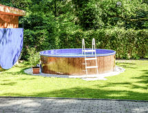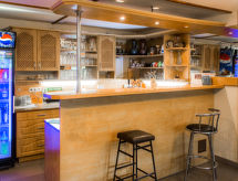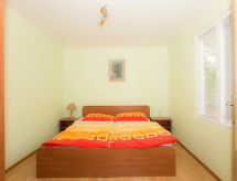 5-Zimmer-Haus 160 m2 auf 2 Stockwerken. Hell, renoviert im Jahre 2013, zweckmässig eingerichtet: Salon mit Esstisch, Bar, TV und Holzofen. Sep. WC. E-Heizung. Obergeschoss: (Aussentreppe) Wohn-/Schlafzimmer mit 1 Diwanbett, Essecke und Sat-TV. 1 Zimmer mit 1 Bett und 1 Doppelbett. 1 Zimmer mit 2 Betten. 1 Zimmer mit 1 Doppelbett. Küche (4 Kochplatten, Backofen, Toaster, Wasserkocher, Mikrowelle, elektrische Kaffeemaschine). Dusche/WC, sep. WC. E-Heizung. Grosse Terrasse. Terrassenmöbel, Gartengrill (mobil). Zur Verfügung: Internet (Wireless LAN, gratis). Bitte beachten: Nichtraucher-Unterkunft. Maximal 1 kleines Haustier/Hund erlaubt. Mit eingezäuntem Grundstück. Eine Terrasse ist vorhanden. Eine Feuerstelle ist verfügbar. Ein Billardtisch ist vorhanden. Ein Tischtennistisch ist verfügbar.- Ausstattung