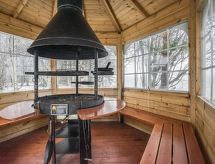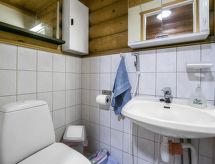 32 km nördlich von Lahti. See Vesijärvi 20 m (Länge 20 km, Breite 5 km), flaches Wasser, weicher Sandboden. Eigenes Boot. Blockhaus, Baujahr 1995, Wohnküche mit 2 Zustellbetten, Schlafzimmer mit 2 Betten. Obergeschoss: 2 Betten, Schlafboden, Waschraum, Ankleideraum, Sauna (elektrischer Saunaofen), offene Veranda und Balkon. Traditionelles Blockhaus auf einem sonnigen Grundstück. Wasser im Wasserhahn kann nach Eisen riechen/schmecken. Es ist jedoch geprüft und sicher als Haushaltswasser zu verwenden. Der Kunde kann auch Trinkwasser mitbringen. Golfplatz in Vääksy 10 km. Beleuchtete Skipiste (5 km) 3 km vom Haus entfernt. Slalompisten des Messilä Ferienzentrums 35 km. Der Eigentümer hat weitere Ferienhäuser 6399, 6400, 6772, 7076. Die Häuser stehen nahe beieinander, aber dazwischen gibt es Bäume. Ferienhäuser haben Trampolin zur Mitbenutzung. Das Skigebiet von Lahti ist 32 km entfernt. Eine Feuerstelle ist vorhanden.- Ausstattung