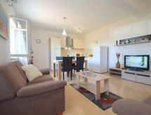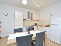 3-Zimmer-Doppelhaushälfte 56 m2, Südwestlage. Wohn-/Esszimmer mit 1 Diwanbett (160 cm, Länge 200 cm), Sat-TV (Flachbildschirm), Klimaanlage. Ausgang zur Terrasse. 1 Zimmer mit 2 Betten (90 cm, Länge 200 cm). 1 Zimmer mit 1 franz. Bett (140 cm, Länge 190 cm). Offene Küche (Backofen, Geschirrspüler, 4 Glaskeramikherd Platten, Wasserkocher, Mikrowelle, Tiefkühler, elektrische Kaffeemaschine). Bad/WC. Terrasse 20 m2. Terrassenmöbel, Liegestühle. Sicht auf den See. Zur Verfügung: Internet (Wireless LAN, gratis). Damit es auch im Sommer angenehm kühl bleibt, verfügt dieses Ferienobjekt über eine Klimaanlage. Ein privater Pool ist verfügbar. Es gibt ein Ofen.- Ausstattung