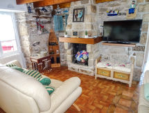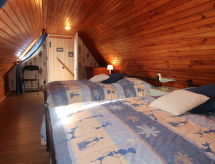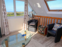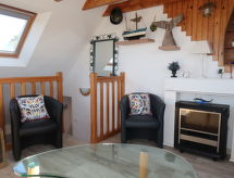 "Kerludu", 5-Zimmer-Haus 130 m2 auf 3 Stockwerken. Schön und rustikal eingerichtet: grosses Wohn-/Esszimmer mit Veranda mit TV (Flachbildschirm). Offene Küche (Backofen, Geschirrspüler, 4 Induktionskochplatten, Toaster, Wasserkocher, Mikrowelle, elektrische Kaffeemaschine) mit Esstisch. Dusche, sep. WC, Doppelwaschbecken. Obergeschoss: 1 abgeschrägtes Zimmer, - 175 cm mit 1 Bett (90 cm), 1 franz. Bett (140 cm). 1 abgeschrägtes kleines Zimmer, - 175 cm mit 1 Doppeldiwanbett (1 x 140 cm, Länge 190 cm). Salon abgeschrägtes. 2. Obergeschoss: (steile Treppe) 1 abgeschrägtes Zimmer, Deckenhöhe 130 - 178 cm mit 1 franz. Bett (140 cm). E-Heizung. Terrassenmöbel, Gartengrill, Liegestühle (4). Schöne Panoramasicht auf das Meer. Zur Verfügung: Waschmaschine, Wäschetrockner. Bitte beachten: Nichtraucher-Haus. Rauchmelder. Nur vom Aussenbereich her erreichbar: unabhängiger Raum mit Ersatzdusche. Separates WC. Der Salon in der 2. Etage bietet eine Panoramasicht auf die "Pointe du Raz". Der kleine Hafen "Le Vorlenn" liegt 250 m entfernt und ist bekannt für seine kleinen Fischerboote, die Ligneurs du Raz de Sein. Gewährt spektakulärer Aussicht auf das Meer. Das Haus ist auch mit einem Wäschetrockner ausgestattet.- Ausstattung
