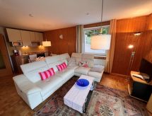 3-Zimmer-Wohnung 75 m2, im ebenerdigen Untergeschoss. Schön und gemütlich eingerichtet: Wohn-/Esszimmer mit Esstisch und Sat-TV (Flachbildschirm), Radio. Ausgang zum Garten. 1 Doppelzimmer. 1 Zimmer mit 2 Betten und Dusche/WC. Offene Küche (Backofen, Geschirrspüler, 4 Glaskeramikherd Platten, Mikrowelle). Bidet, sep. WC. Terrasse. Terrassenmöbel, Liegestühle (4). Schöne Sicht auf die Landschaft. Zur Verfügung: Sauna (extra), Bügeleisen, Haartrockner. Internet (Wireless LAN, gratis). Bitte beachten: eigener Eingang, Rauchmelder, Feuerlöscher. Ist ein regelmäßiges Duschritual fest im Tagesablauf verankert? Das schaffen wir, denn eine Dusche ist vorhanden. Ein Internetanschluss ist vorhanden. Das Haus ist auch mit einem drahtlosen lokalen Netzwerk (WLAN) ausgestattet. Ein Tischtennistisch ist verfügbar.- Ausstattung