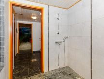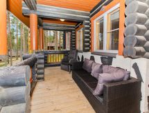 77 km nördlich von Joensuu, See Pielinen 100 m (871,2 km2), gemeinsamer Strand mit leicht vertiefendem Sandboden mit einigen Steinen, Boot gegen Aufpreis. Block-Ferienhaus mit drei Etagen, Baujahr 2006, Küche, Wohnzimmer, Schlafzimmer mit Doppelbett, Schlafzimmer mit zwei Betten, Schlafzimmer mit Doppelbett, Hauswirtschaftsraum, im Obergeschoss Schlafzimmer mit zwei Betten und zwei Zusatzmatratzen für Kinder, Schlafgalerie mit zwei Matratzen und drei Zusatzmatratzen für Kinder, im Erdgeschoss Kaminraum mit Schlafcouch, Ankleideraum, Waschraum, Sauna (Elektroherd), Skiwachsraum, zwei Terrassen und Balkon. Geräumiges Ferienhaus befindet sich am See Pielinen, im Ferienhausgebiet Loma-Koli. Gebaut für die Messe "Holiday Housing Fair" 2006. Das Ferienhaus eignet sich für verschiedene Familien oder kleinere Gruppe. 4 Schlafzimmer, Tisch und Geschirr für 10 Personen. Sauna für 8 Personen mit Elektroherd, 3 Duschen (im selben Badezimmer) und 3 Toiletten. Zwei Kamine. Ukko-Koli Pisten 9 km. Bei Vorbestellung können Sie ein Boot, gegen Aufpreis EURO 60.-/1-3 Tage oder EURO 110.-/4-7 Tage. Die Endreinigungskosten sind im Preis inbegriffen. Es gibt eine Feuerstelle. Bei der im Haus befindlichen Sauna kommt Ihr Stoffwechsel bei der Hitze auf Trab. Unabhängiger sind Sie mit der eigens vorhandenen Waschmaschine.- Ausstattung