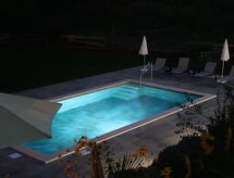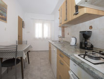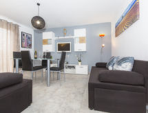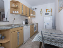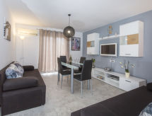 2-Zimmer-Wohnung 65 m2, im Erdgeschoss. Wohn-/Esszimmer mit 1 Diwanbett (90 cm, Länge 200 cm), Sat-TV und Klimaanlage. Ausgang zum Balkon. Eingang. Ausgang zur Terrasse. 1 Zimmer mit 1 Bett (80 cm, Länge 200 cm), 1 franz. Bett (160 cm, Länge 200 cm). Küche (Backofen, Geschirrspüler, 4 Induktionskochplatten, Toaster, Wasserkocher, Mikrowelle, Tiefkühler, elektrische Kaffeemaschine). Dusche/WC. Balkon 6 m2, Terrasse 6 m2. Terrassenmöbel, Balkonmöbel, Liegestühle, Abstellkammer. Sicht auf das Schwimmbad. Zur Verfügung: Waschmaschine, Bügeleisen, Haartrockner. Internet (Wireless LAN, gratis). Bitte beachten: Nichtraucher-Haus. Eigener Eingang. Duschen ist belebend und eine Brause ist zugegen. Die drückende Hitze kann Körper und Gemüt stark belasten. Deshalb sind die Räumlichkeiten mit Klimaanlagen ausgestattet. Ein Balkon ist verfügbar. Es hat eine Terrasse. Geeignet für ein Barbecue. Ein Parkplatz ist verfügbar. Es hat ein privater Pool.- Ausstattung