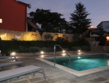 Dreifamilienhaus "Korina". Im Weiler Sveti Bartul, 4 km vom Zentrum von Labin, 9 km vom Meer. Zur Alleinbenutzung: Grundstück 800 m2 mit Pflanzen und Bäumen, Schwimmbad eckig (4 x 8 m, 135 cm tief, saisonale Verfügbarkeit: 04.Jun. - 08.Okt.) mit Innentreppe. Aussendusche, Terrasse, Gartenmöbel, Grill (Rutschbahn, Schaukel), Poolpflege durch den Besitzer/Gärtner. Im Hause: Internetzugang, Trampolin. Parkplatz beim Haus auf dem Grundstück. Einkaufsgeschäft 2.5 km, Supermarkt 4 km, Restaurant 4 km, Kieselstrand 9 km. Bitte beachten: Flugplatz 45 km vom Haus. Eine wunderschöne Umgebung für Ausritte und eine freundliche Atmosphäre erwarten Pferdesportfreunde. was will man als Ross oder Reiter mehr?Interior
