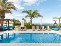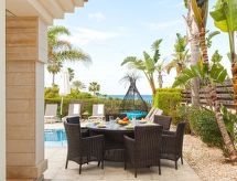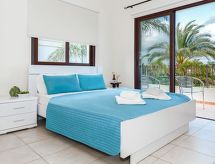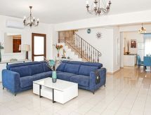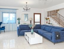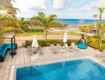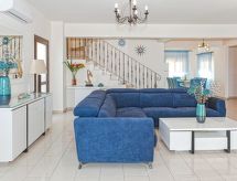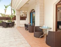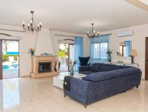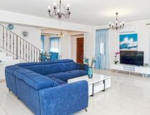 Komfortable, luxuriöse Villa "tessa". Hausausstattung: Klimaanlage, Waschmaschine (zur Alleinbenutzung). Zufahrt & Parkmöglichkeiten: reservierter Parkplatz. Ganzjährig Zufahrt bis zum Haus möglich. Lage: im Ortszentrum von Kapparis, am Ortsrand von Protaras, am Meer. Aussicht von der Wohnung auf das Meer. Umgebung des Hauses: Grundstück (zur Alleinbenutzung), Swimming Pool (zur Alleinbenutzung, Länge 8 m x Breite 4 m). Infrastruktur und Distanzen: Einkaufsgeschäft 300 m, Supermarkt 300 m, Restaurant 300 m, Sandstrand 300 m.Interior