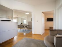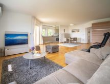 2-Zimmer-Wohnung 93 m2 im 1. Stock, Südlage. Schön und modern eingerichtet: Wohn-/Esszimmer 40 m2 mit 1 franz. Wandklappbett (140 cm, Länge 190 cm), Sat-TV und Klimaanlage. Ausgang zur Terrasse. 1 Zimmer mit 1 franz. Bett (180 cm, Länge 200 cm), Sat-TV. Offene Küche (Backofen, Geschirrspüler, 4 Induktionskochplatten, Wasserkocher, Tiefkühler, elektrische Kaffeemaschine). Dusche/Bidet/WC. Heizung. Terrasse 15 m2, überdacht. Terrassenmöbel. Sicht auf das Meer und die Landschaft. Zur Verfügung: Waschmaschine, Safe, Babybett, Haartrockner. Internet (Wireless LAN, gratis). Bitte beachten: eigener Eingang. Heizungist nur im Zeitraum ab 01.10. bis 31.05. (inklusive). Gewährt spektakulärer Aussicht auf das Meer. Es gibt eine Terrasse. Eine Waschmaschine ist zum gebrauch vorhanden.- Ausstattung