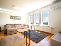 Kastav 7 km von Opatija: Dreifamilienhaus "Kvarner house". 850 m vom Zentrum von Kastav, 9.5 km vom Zentrum von Rijeka, ruhige, sonnige, erhöhte Lage, 5.5 km vom Meer, im Grünen. Zur Mitbenutzung: Grundstück 2'000 m2 mit Rasen und Pflanzen, Schwimmbad eckig (7 x 4 m, 150 cm tief, saisonale Verfügbarkeit: 01.Jul. - 01.Okt.) mit Innentreppe. Aussendusche, Sprudelbad, Terrasse (30 m2), Gartenmöbel, Grill. Im Hause: Internetzugang. Parkplatz beim Haus auf dem Grundstück. Einkaufsgeschäft, Supermarkt 650 m, Restaurant 850 m, Kieselstrand 5.5 km, betonierter Strand 5.5 km.Interior