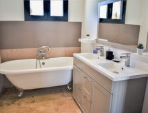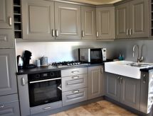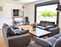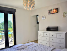4-Zimmer-Haus 115 m2. Wohn-/Esszimmer 35 m2 mit Panoramafenster mit TV (Flachbildschirm), Klimaanlage. Ausgang zum Garten, zur Terrasse. 1 Zimmer mit 1 Doppelbett (160 cm), sep. WC und Bad/Dusche. Ausgang zum Garten. 1 Zimmer mit 1 Doppelbett (160 cm), Bad und TV (Flachbildschirm). Ausgang zum Garten. 1 Zimmer mit 1 franz. Bett (160 cm), Dusche, TV und Flachbildschirm. Ausgang zum Garten. Offene Küche (5 Kochplatten, Backofen, Geschirrspüler, Mikrowelle, Tiefkühler, elektrische Kaffeemaschine). Sep. WC. Terrasse 60 m2, überdacht, Terrasse 50 m2, überdacht. Terrassenmöbel, Gartengrill, Liegestühle (6). Sicht auf. Zur Verfügung: Waschmaschine, Wäschetrockner, Kinderhochstuhl, Babybett. Internet (Wireless LAN, gratis). Geeignet für Familien. Mit eingezäuntem Grundstück. Das Haus ist auch mit einem privaten Pool ausgestattet. Das Haus ist auch mit einem Wäschetrockner ausgestattet.- Aktivitäten in der Nähe